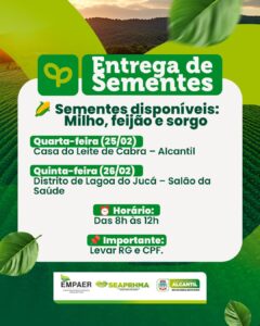 A Prefeitura de Alcantil, através da Secretaria Municipal de Agricultura, realiza a entrega de sementes