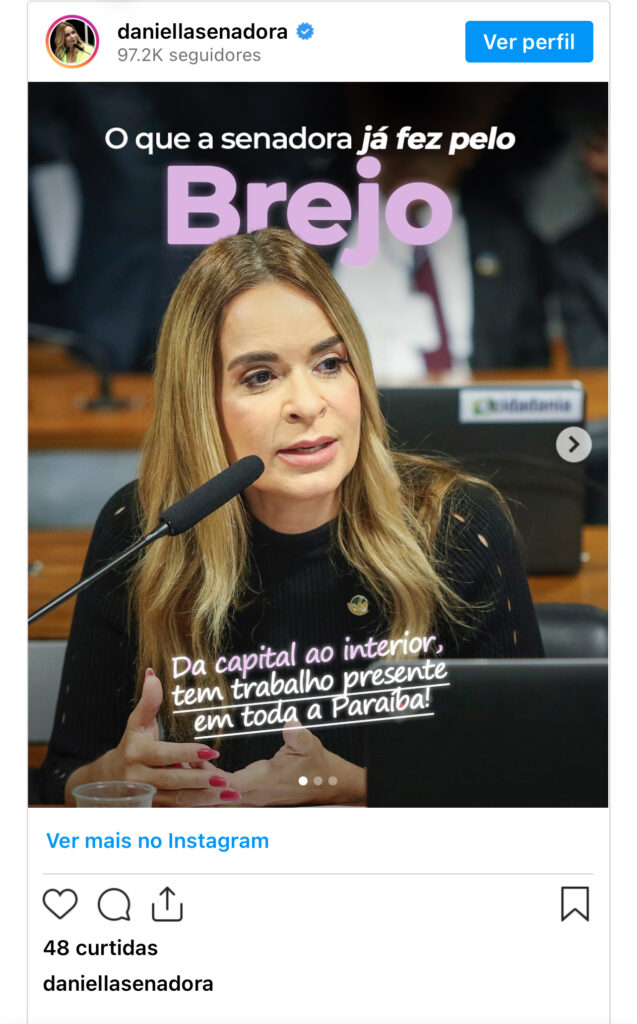 A senadora, Daniella Ribeiro (PP), utilizou as redes sociais nesta sexta-feira (01/08) para destacar as ações do mandato que proporcionaram desenvolvimento e melhorias na qualidade de vida da população do Brejo paraibano.