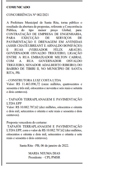 O Ministério Público da Paraíba (MPPB) abriu processo em desfavor do atual prefeito do Município de Santa Rita, Emerson Fernandes Alvino Panta, bem como do secretário da Infraestrutura, Klelyson Keyler Batista Leite e da empresa Tapajós Terraplanagem e Pavimentação LTDA. EPP.
