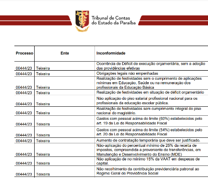 Segundo o ‘Relatório Consolidado da Esfera Municipal – Janeiro a Julho de 2023‘ emitido, no último mês de setembro, pela Corte de Contas, através da Diretoria de Auditoria e Fiscalização (DIAF), Wenceslau chegou a realizar festividades sem cumprir aplicações mínimas em Educação, Saúde ou não remuneração dos profissionais da Educação Básica.