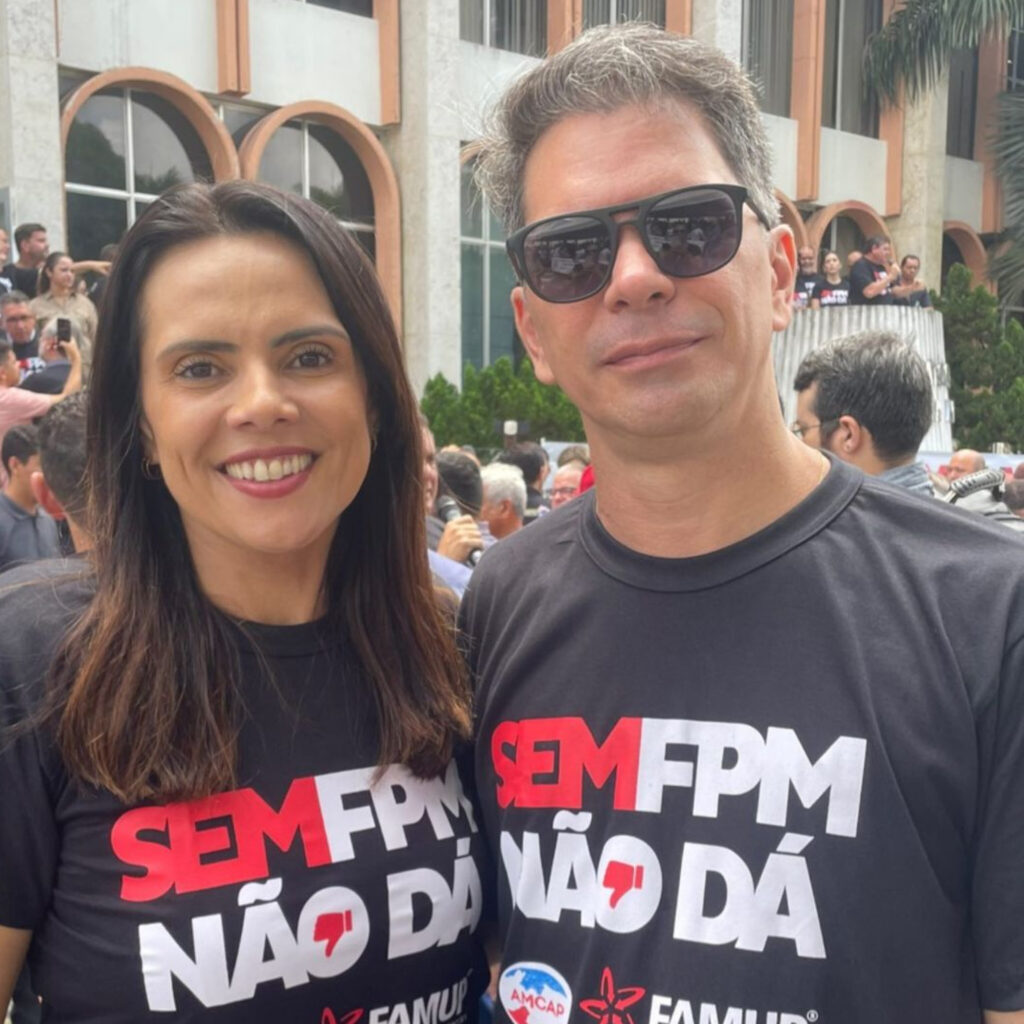 A prefeita de Pedro Régis Michele Ribeiro (PSB), e o prefeito de Caldas Brandão Fábio Rolim (MDB), marcaram presença nesta quarta-feira (30), no ato contra a queda do Fundo de Participação dos Municípios (FPM).