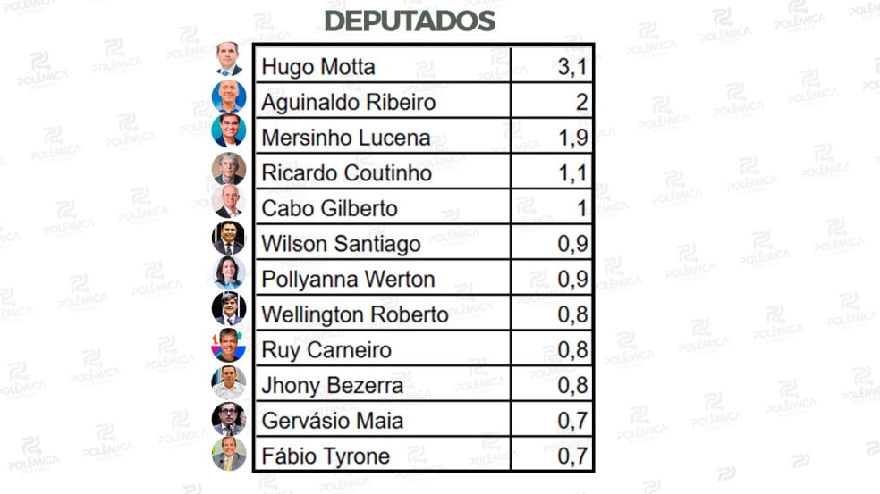 Nesta quarta-feira (10), o Polêmica Paraíba disponibiliza os números da disputa por uma das 12 vagas do estado na Câmara Federal.