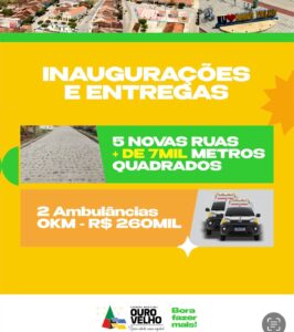 “Estamos entregando na próxima quinta-feira, novas ruas, duas novas ambulância, e assinatura de ordens de serviço de mais de R$ 3 milhões em investimentos que irão beneficiar diretamente a nossa população,” disse o gestor.