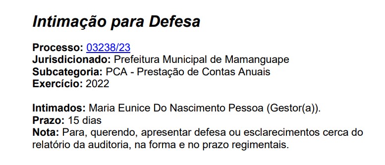 O Tribunal de Contas do Estado intimou a prefeita de Mamanguape a apresentar defesa sobre diversas irregularidades na prestação de contas referente ao ano de 2022. Entre os problemas apresentados, está uma denúncia de um gastou de mais de R$ 1,4 milhão em material gráfico.
